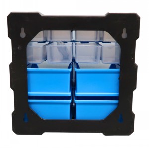 • Mix of clear drawers and coloured bins.